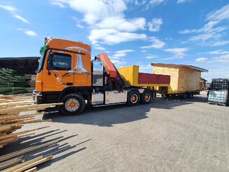 Specjalizujemy się w transporcie domków, pawilonów, kontenerów, materiałów budowlanych, pojazdów, konstrukcji wraz z załadunkiem i rozładunkiem.