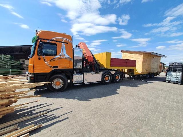 Specjalizujemy się w transporcie domków, pawilonów, kontenerów, materiałów budowlanych, pojazdów, konstrukcji wraz z załadunkiem i rozładunkiem.
